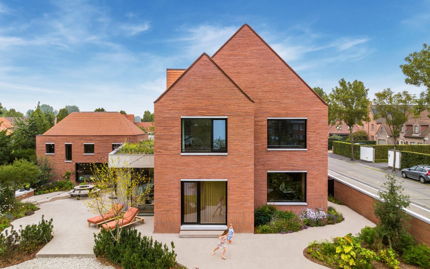 "Voor de gevel- en dakbedekking werd de rode baksteenarchitectuur van de bestaande woning overgenomen en gemoderniseerd."