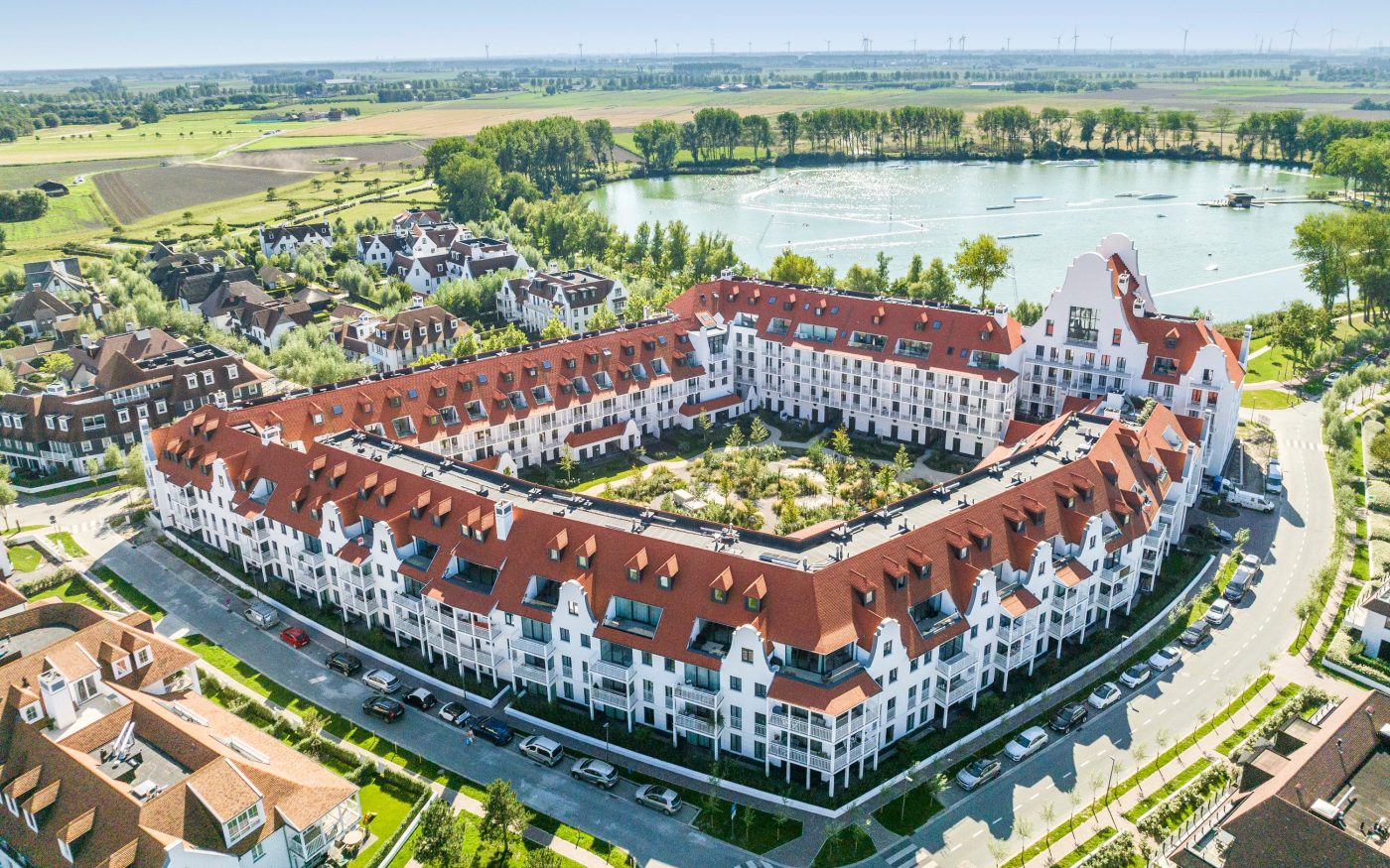 Residentie Meerzicht werd ontworpen als het meest markante onderdeel van het Duinenwater-project. Het gebouw omkadert een centrale parktuin waarlangs de circulatie verloopt: bewoners komen binnen langs een prestigieuze inkompartij en gaan via de rijkelijke binnentuin naar hun privéresidentie.