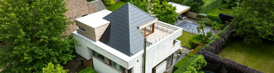 Vandaag is dit hele piramidedak afgewerkt met Wevolt X-Roof. “De klant heeft zonnepanelen op elk dakvlak en wekt dus bij de minste zonneschijn uit elke windrichting groene stroom op. Hij is zeer tevreden over het uitzicht en het rendement van zijn nieuwe dak. Het geslaagde resultaat en het feit dat dit zo’n handig product is om mee te werken, maken dat dit zeker niet de laatste werf is waar we Wevolt X-Roof zullen plaatsen”, besluit Vincent.