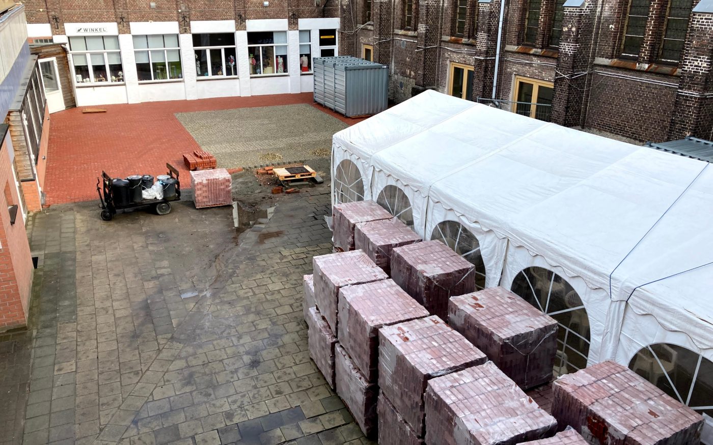De oude betegeling van deze binnenkoer was in zeer slechte staat. Met de tijd hadden zich op verschillende plaatsen kleine verzakkingen voorgedaan, waardoor bij regenweer overal plassen ontstonden. Toen Toontje vzw het plan had opgevat om met eigen middelen de binnenkoer voor de helft opnieuw aan te leggen met grasdallen en klinkers, heeft Wienerberger besloten om gratis 410 m² waterpasserende kleiklinkers te schenken. Dit heeft toegelaten om de volledige binnenkoer van duurzame en ecologische betegeling te voorzien, waardoor het regenwater vlot infiltreert in de ondergrond en plassen definitief tot het verleden behoren.
