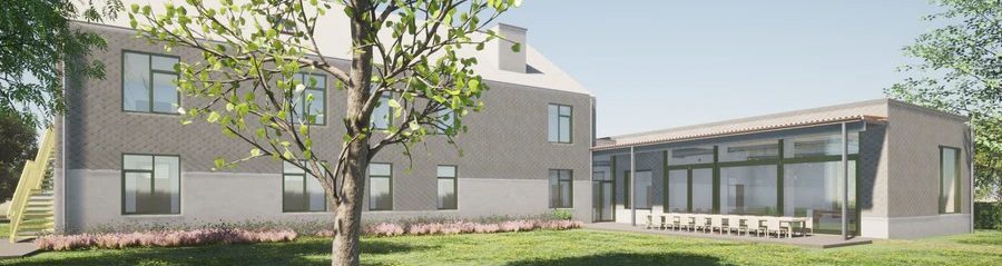 EVR-architecten tekende het ontwerp, waarbij huiselijkheid de kern vormt. Het project omvat de renovatie van het hoofdgebouw van de voormalige kleuterschool en de toevoeging van een nieuw volume. Het bestaande gebouw blijft grotendeels behouden en zal het daggedeelte huisvesten, met onder meer een multifunctionele ruimte en een leefruimte met keuken.