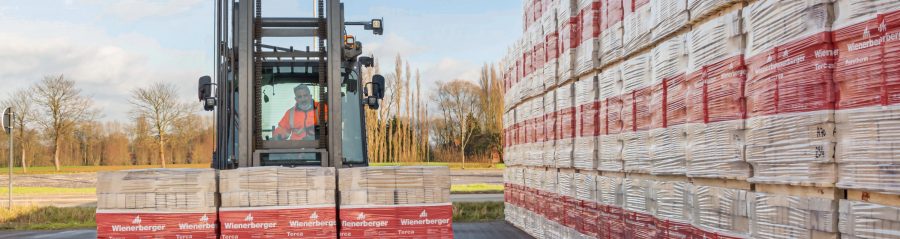 Nous recourons également à une solution circulaire pour nos palettes, sous la forme de palettes consignées. Nos tuiles étaient déjà livrées sur de telles palettes consignées et, depuis 2022, ce système est également d’application pour nos blocs pour murs intérieurs. Nous prévoyons aussi de faire de même à l’avenir pour nos briques de parement.