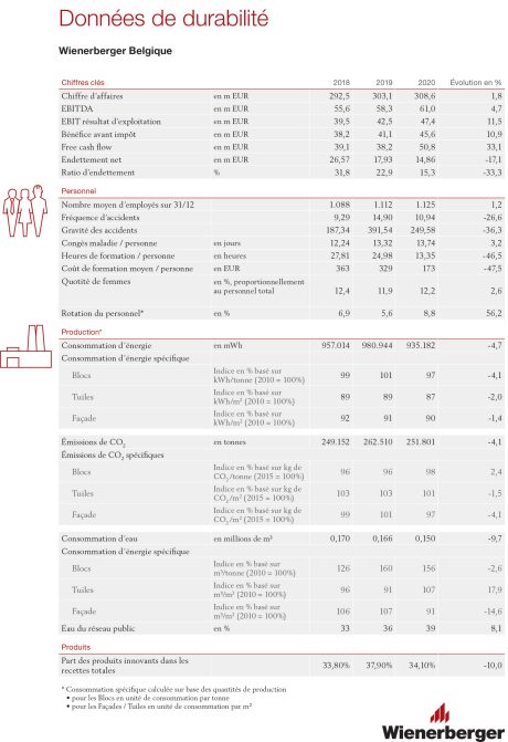 Consultez ici les Key Indicators (2020) de Wienerberger Belgique: société, personnel, production et produits.