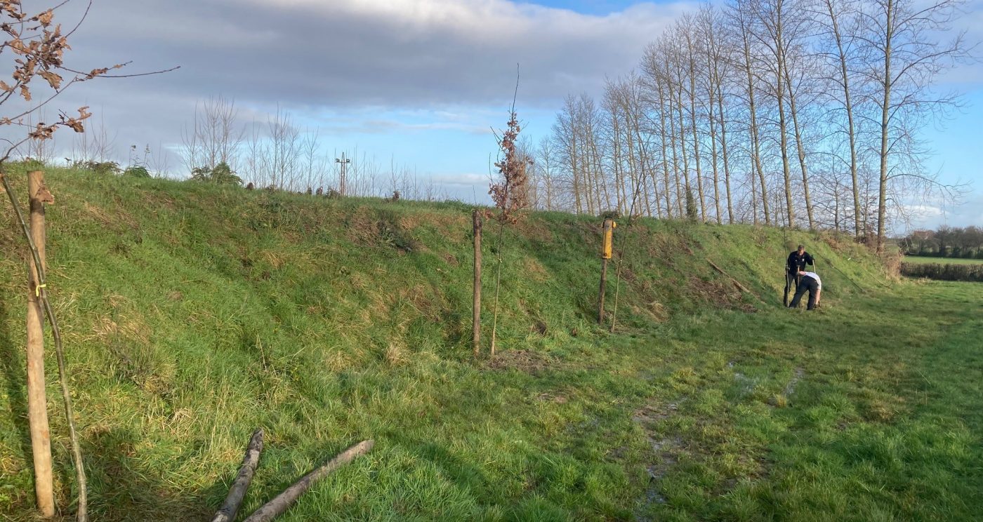 Sur le site se dressent plusieurs rangées d'arbres. Ces arbres seront remplacés en différentes phases et sur une plus longue période par des essences indigènes. Nous évoluerons ainsi à terme vers une bordure boisée indigène, particulièrement précieuse pour la biodiversité.