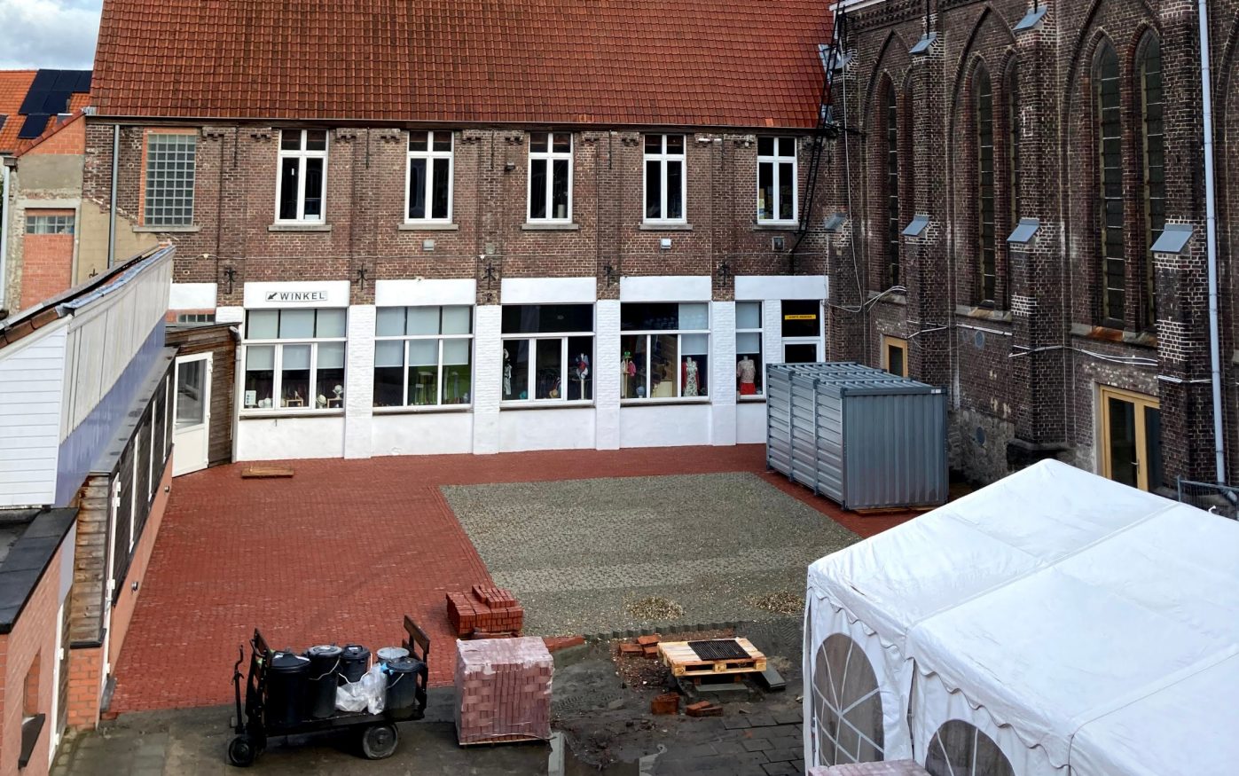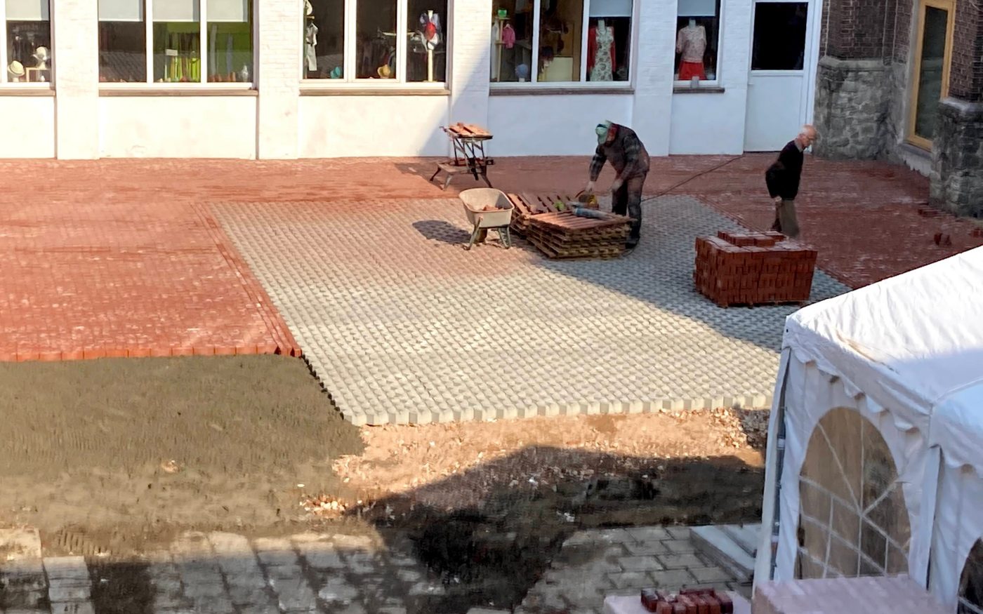 L'ancien pavage était en très mauvais état, avec de légers affaissements. Wienerberger a fait don de 410 m² de pavés en terre cuite drainants pour doter toute la cour intérieure d'un pavage durable et écologique. L'eau de pluie pouvant ainsi s'infiltrer dans le sol, les flaques d'eau appartiennent désormais au passé.