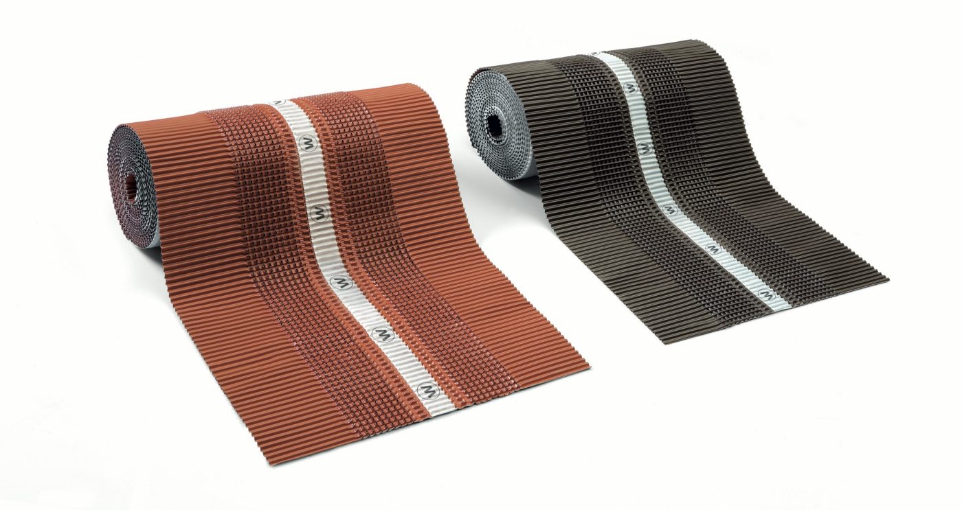 Une sous-faîtière de ventilation à microperforations, munie de la bande adhésive rouge innovante et unique qui adhère aux supports humides, même à des températures jusqu’à -5°C