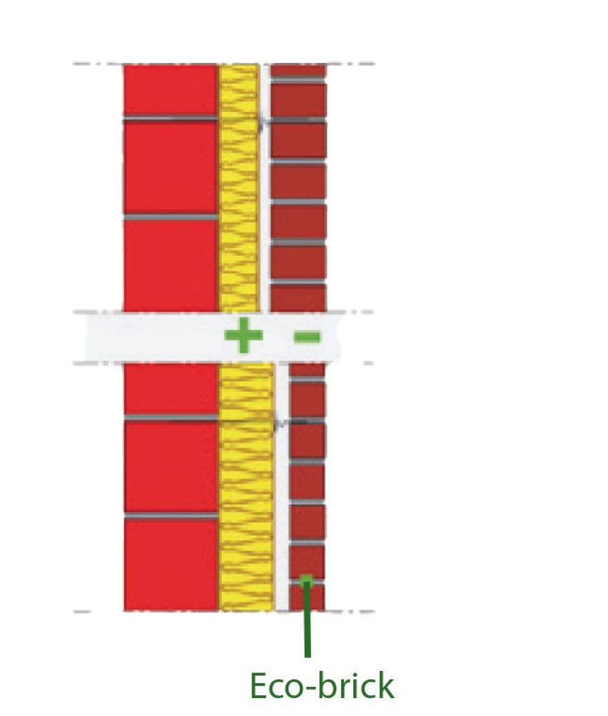 Wanneer u een Eco-brick gebruikt in plaats van een klassieke gevelsteen, kan u tot 3,5 cm meer isolatie plaatsen in de spouw binnen eenzelfde dikte van de buitenmuur.